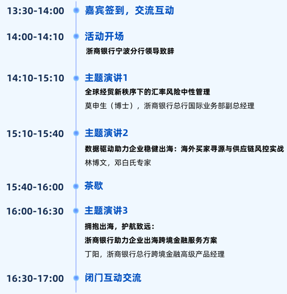 在全球市场机遇与风险并存的今天,中国企业出海已进入深水区。精准定位海外买家、有效评估客户信用、构建稳健的供应链风控体系,成为甬城企业开拓国际市场、实现全球化经营的核心挑战。为助力本地出海企业破浪前行,邓白氏携手浙商银行宁波分行,将于12月9日在宁波举办“观局、驭势、智链全球”企业出海专题研讨会。本次会议将汇聚宁波地区50余家出海企业,聚焦外汇风险管理、海外买家精准寻源、出海供应链风险管理、跨境金融服务等核心议题,通过跨界视角的深度对话与数据驱动的实战案例,为企业提供海外市场开拓与风险管理的全新思路,赋能甬企在全球竞争中乘风破浪,行稳致远。