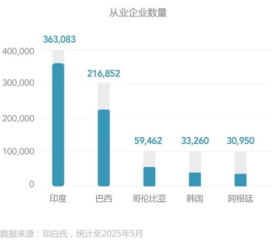 哥伦比亚在男装行业中的参与度较低,但在“男工作服”类别中有近6万家企业,显示出该国在这一领域的专业性和市场需求。