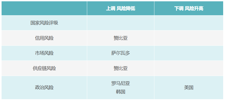 近期国家风险评级发生变化的市场
